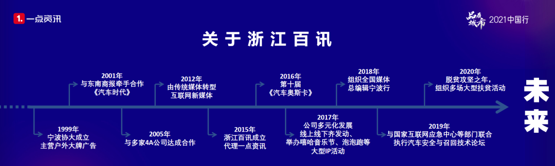 浙江百讯文化传媒有限公司是一家致力于服务浙江的在线媒体服务提供商,公司依托一点资讯、百度、腾讯、新浪微博、墨迹天气、鲜城宁波等6大线上主流平台,结合公司自有自媒体平台、短视频服务以及网红直播等,与线下活动策划执行相辅相成,为政府、企业提供全案整合营销服务,达到线上曝光,线下聚焦。作为宁波资深广告公司,从1999成立之初至今已走过21个年头。在2015年之际,董事长全面整合多家子公司,成立了浙江百讯,正式集团化运营。2018年我们设计杭州分公司,截至目前我们已发展到60多名员工。我们期望立足浙江,辐射全国,实现“资源通融、内容兼融、宣传互融、利益共融”的新型媒体。